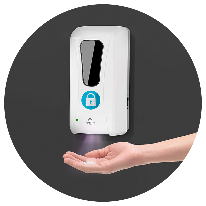 Nous avons développé un système de communication afin de solliciter vos employés et visiteurs à utiliser une solution hydroalcoolique tout en les informant des mesures de sécurité et de protection de la santé.